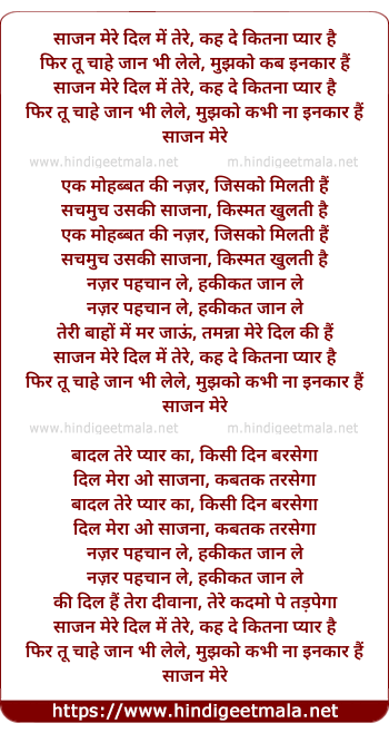 Lyrics of Sajan Mere Dil Me - साजन मेरे दिल में