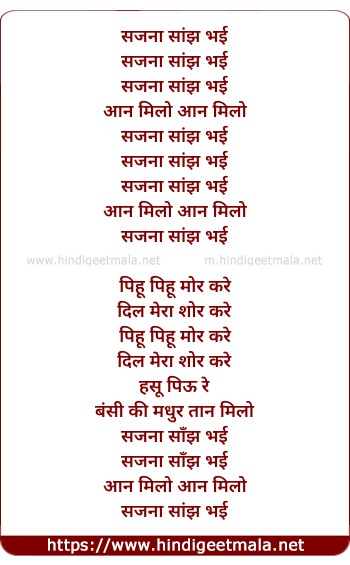 Lyrics of Sajana Sanjh Bhayi Aan Milo - सजना सांझ भई आन मिलो