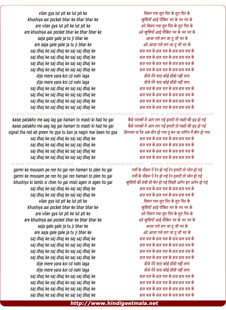 Lyrics of Sajh Dhaj Ke - विलन गया लूट पिट के लूट पिट केvilan gya lut pit ke lut pit ke