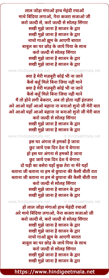 Lyrics of Sakhi Mujhe Jana Hai Sajan Ke Dwar - सखी मुझे जाना है साजन के द्वार