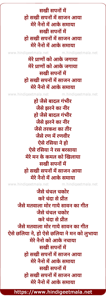 Lyrics of Sakhi Sapano Me Sajan Aaya - सखी सपनों में साजन आया