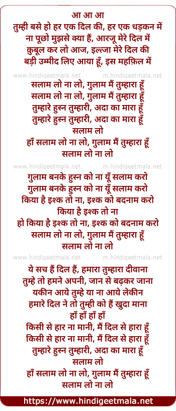 Lyrics of Salaam Lo Na Lo - सलाम लो ना लो