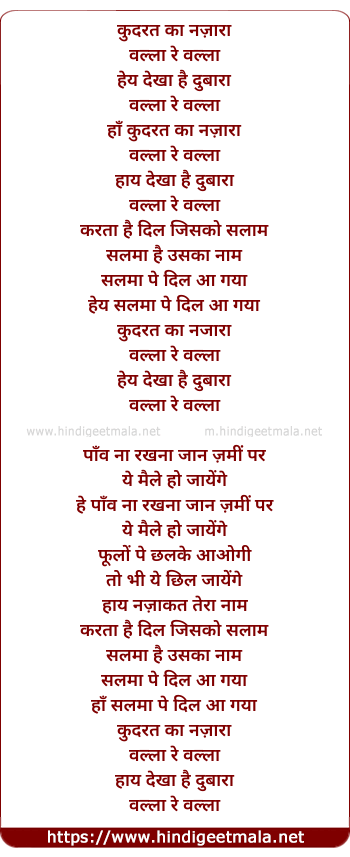 Poetic Translation - Lyrics of Salma Pe Dil Aa Gaya (Part - Ii) - कुदरत का नज़ारा