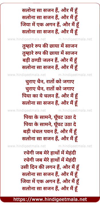 Lyrics of Salona Sa Sajan Hai Aur Main Hoon - सलोना सा सजन हैं, और मैं हूँ