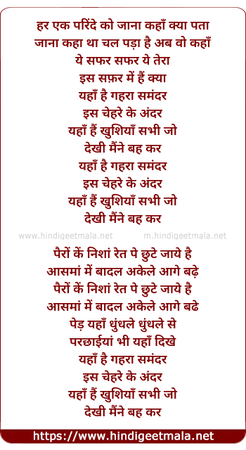 Lyrics of Samandar - हर एक परिंदे को जाना कहाँ क्या पता