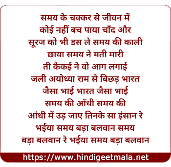 Lyrics of Samay Bada Balwan Hai - समय बड़ा बलवान है