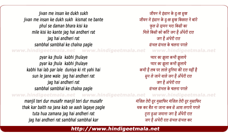 Lyrics of Sambhal Sambhal Ke Chalna Pagle - संभल संभल के चलना पगले