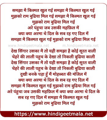 Lyrics of Samjha Me Kismat Khul Gaye - समझा मै किस्मत खुल गई
