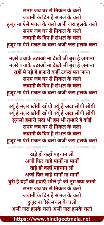 Sanam Jab Ghar Se Nikal Ke Chalo - सनम जब घर से निकल के चलो