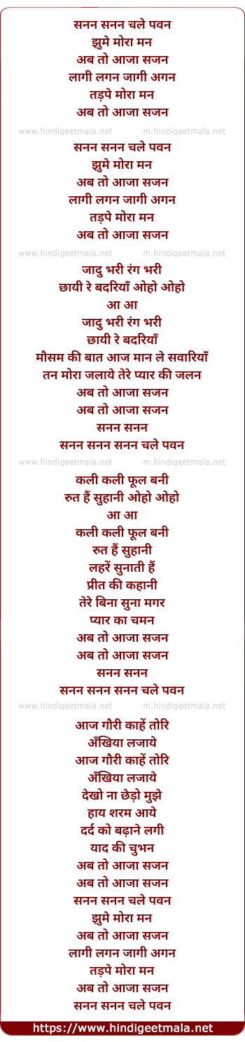 Lyrics of Sanan Sanan Chale Pawan - सनन सनन चले पवन
