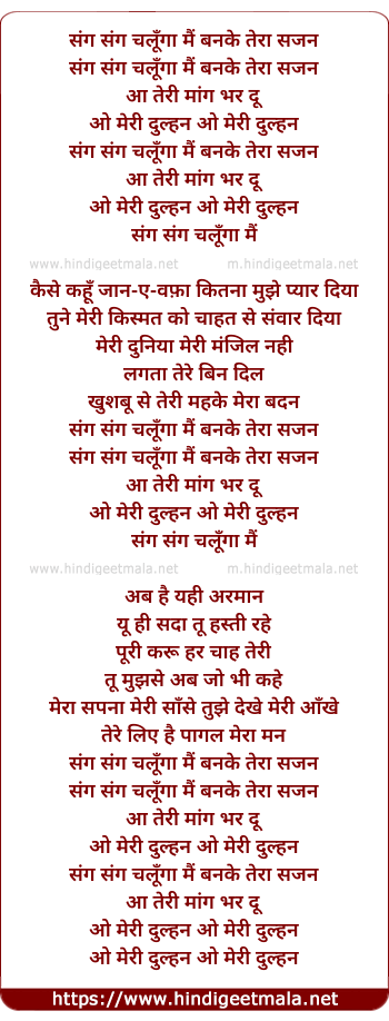 Lyrics of Sang Sang Chalunga Main Ban Ke Tera Sajan - संग संग चलूँगा मैं बनके तेरा सजन