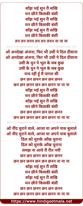 Lyrics of Sanj Bhayi Sun Ri Sakhi - साँझ भई सुन री सखि