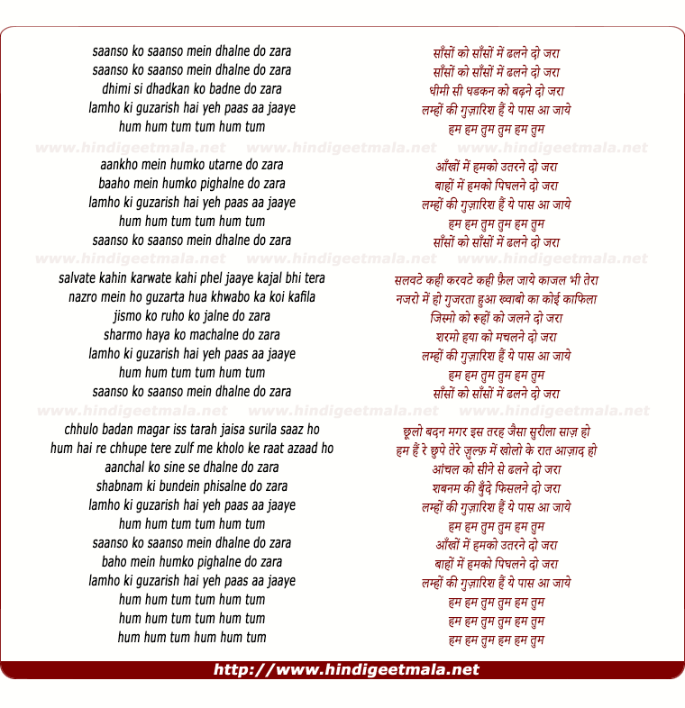 Lyrics of Sanso Ko Sanso Se - साँसों को साँसों से