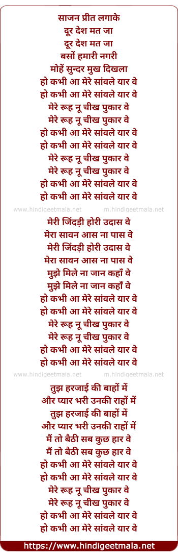 Lyrics of Sanwaal - साजन प्रीत लगाके