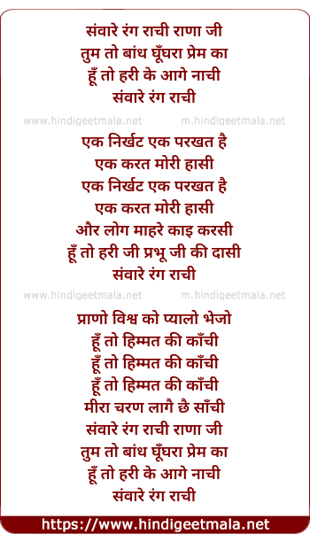 Lyrics of Sanware Rang Raachi - संवारे रंग राची