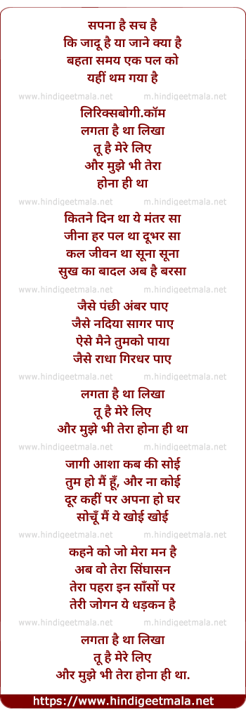 lagta hai tha likha tu hai mere liye