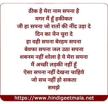 Lyrics of Sapna Woh To Mera Naam Hai - सपना वो तो मेरा नाम है