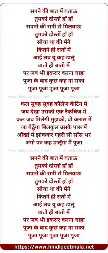 Lyrics of Sapne Ki Baat Main Bataun - सपने की बात मैं बताऊ
