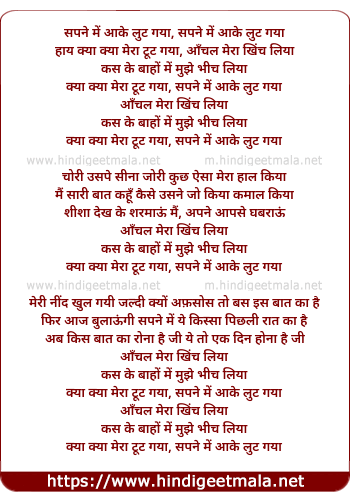 Lyrics of Sapne Me Ake Lut Gaya - सपने में आके लुट गया