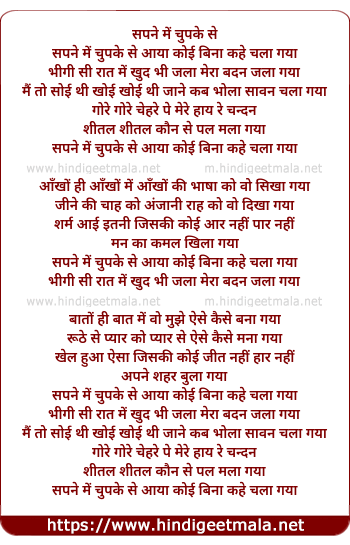 Lyrics of Sapne Me Chupke Se - सपने में चुपके से