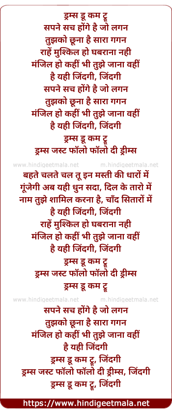 Lyrics of Sapne Sach Honge - सपने सच होंगे