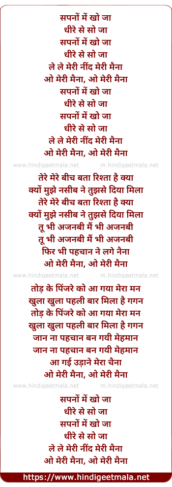 Lyrics of Sapno Me Kho Ja - सपनों में खो जा