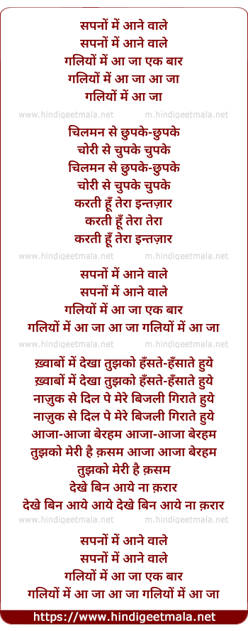 Lyrics of Sapno Me Aane Wale - सपनों में आने वाले