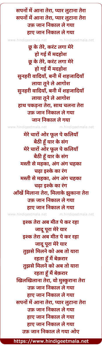 Lyrics of Sapno Mein Aana Teraa - सपनों में आना तेरा