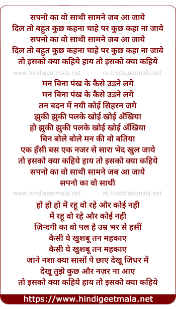 Lyrics of Sapnon Ka Woh Saathi - सपनो का वो साथी