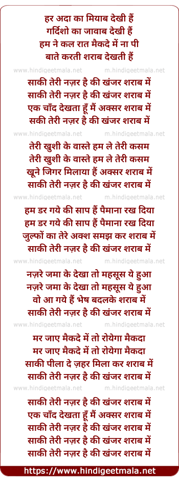Lyrics of Saqi Teri Nazar Hai Ke Khanjar Sharab Mai - हर अदा का मियाब देखी हैं
