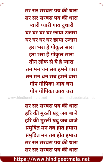 Lyrics of Sar Sar Sarabas Pay Ki Dhara - सर सर सरबस पय की धारा