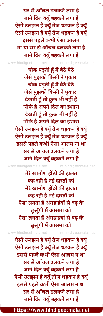sar se anchal dhalakne laga hai