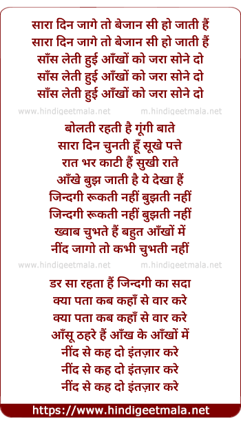 Lyrics of Sara Din Jage To Bejaan Si - सारा दिन जागे तो बेजान सी