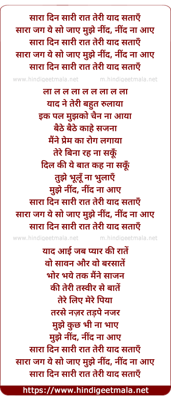 Lyrics of Sara Din Sari Rat Teri Yad Sataye - सारा दिन सारी रात तेरी याद सताएँ
