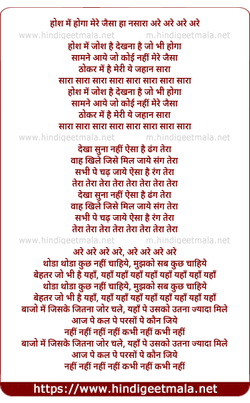 hosh mein hoga mere jaisa ha nasara are are are are