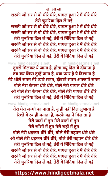 Lyrics of Saraki Jo Sar Se Vo Dhire Dhire - सरकी जो सर से वो धीरे धीरे