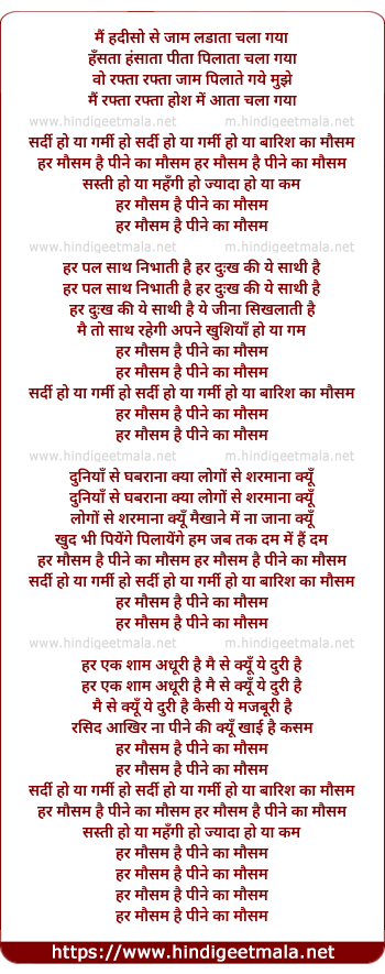 Lyrics of Sardee Ho Ya Garmee Ho - मैं हदीसो से जाम लडाता चला गया