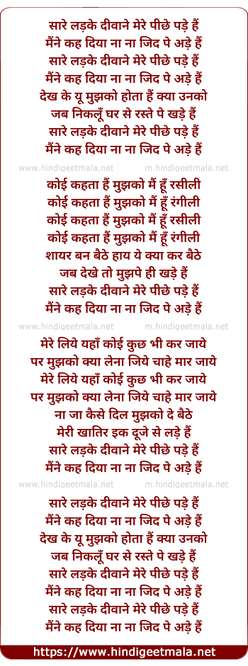 Lyrics of Sare Ladke - सारे लड़के दीवाने मेरे पीछे पड़े हैं