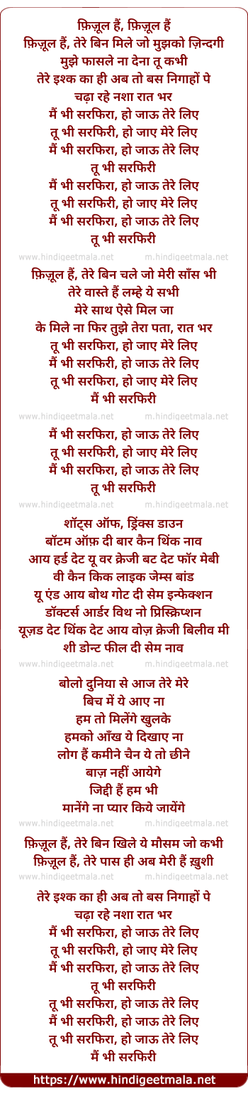 fizul hai, tere bin mile jo mujhko zindagi