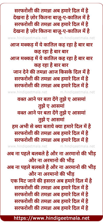 Lyrics of Sarfroshi Ki Tamanna Ab Hamare Dil Me Hai - सरफरोशी की तमन्ना अब हमारे दिल में है