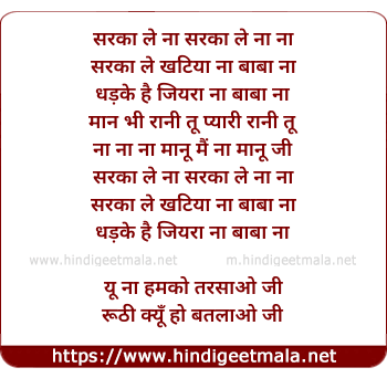 Lyrics of Sarka Le Khatiya Naa Baba Naa - सरका ले खटिया ना बाबा ना
