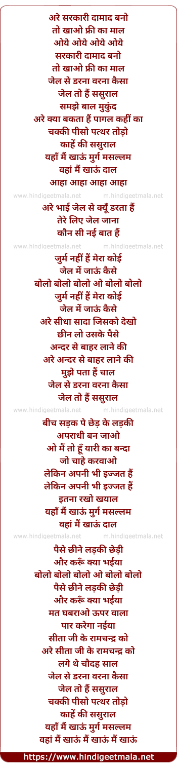 Lyrics of Sarkari Damad Bano - अरे सरकारी दामाद बनो