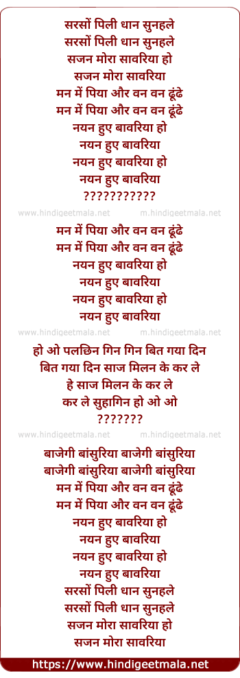 Lyrics of Sarso Peeli Dhan Sunhale - सरसों पिली धान सुनहले