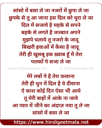 Lyrics of Sason Mein - सांसो में बसा ले जा नजरों में छुपा ले जा