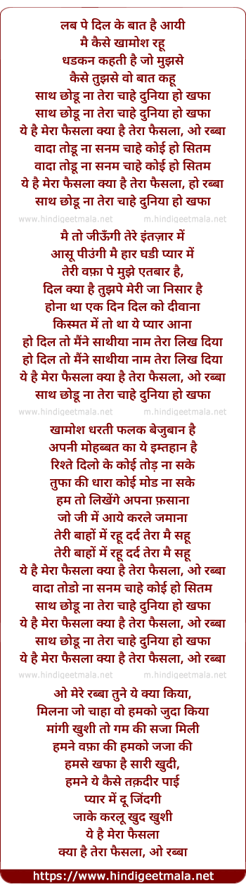 ye hai mera faisla, kya hai tera faisla, o rabba