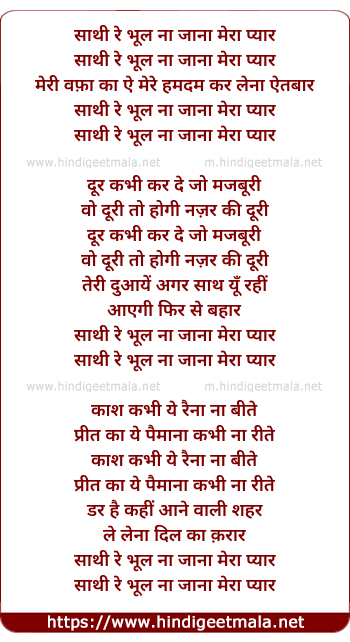Lyrics of Sathee Re Bhul Na Jana Meraa Pyar - साथी रे भूल ना जाना मेरा प्यार