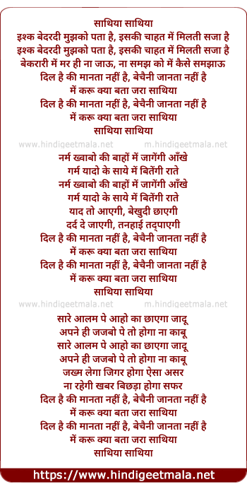 Lyrics of Sathiya Sathiya - साथिया साथिया