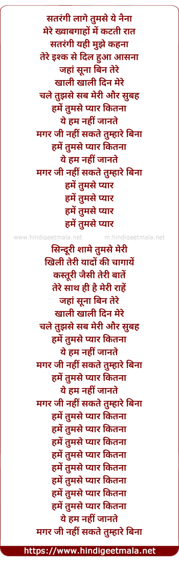 Lyrics of Satrangi Laage Tumse Ye Naina - सतरंगी लागे तुमसे ये नैना