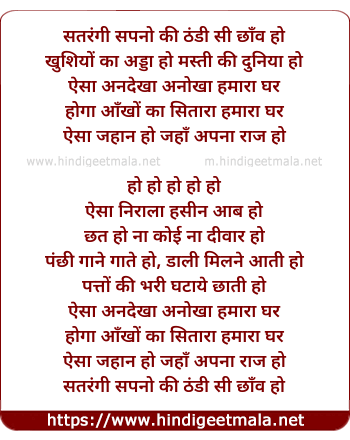 Video of "Satrangi Sapano Ki Thandi Si Chhaanv Ho" from YouTube