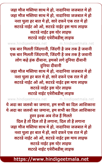 ek bar milti jindgani, jingdi hai jab tak hai jawani